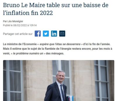 Il n’y a que Bruno le Maire, qui pense qu’elle va baisser d’ici fin 2022.