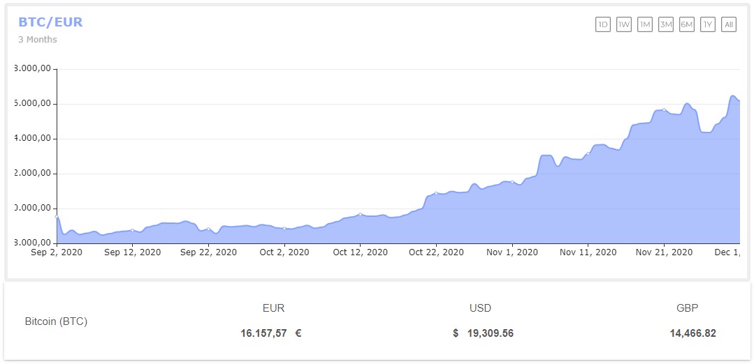 Je pense donc, que le Bitcoin corrigera sévèrement si Biden est bien confirmé par les grands électeurs le 14 décembre ou qu’il s’envolera vers des sommets inespérés si la crise politique aux Etats-Unis s’éternise et qu’aucun président n’est désigné au courant de ce mois en raison des fraudes mises en avant par Trump.