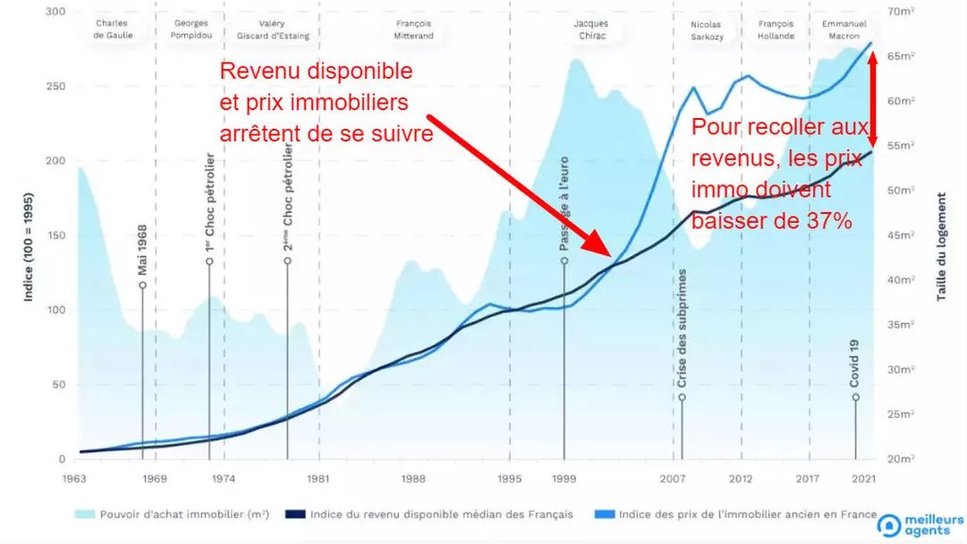 1. On change de paradigme depuis 2000 : les banques centrales impriment, l’inflation flambe, les salaires ne peuvent pas suivre = la France entre en récession et s’appauvrit. Il n’y a pas assez de logement pour tout le monde. Les Français devront se contenter de logements plus petits ( comme prévu il y 15 ans )