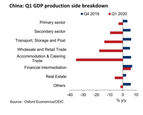 C’est du côté d’Oxford Economics que l’on trouve la première meilleure synthèse sur la catastrophe économique provoquée par ce premier pic épidémique, car, en Chine, les nouvelles ne sont pas très bonnes ni encourageantes. A Wuhan des quartiers entiers retournent en quarantaine. Dans le reste de la Chine de nombreuses villes (petites pour le moment) sont à nouveau coupées du monde et l’on estime en ce moment à 70 millions les Chinois à nouveau confinés. C’est l’équivalent de la population française, et c’est ainsi que cela avait commencé au mois de janvier.