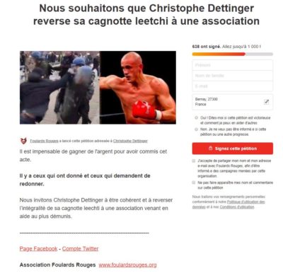 De l’autre côté, les « foulards rouges » ont lancé au même moment ou presque une pétition demandant à ce même Christophe de « rendre l’argent ».
