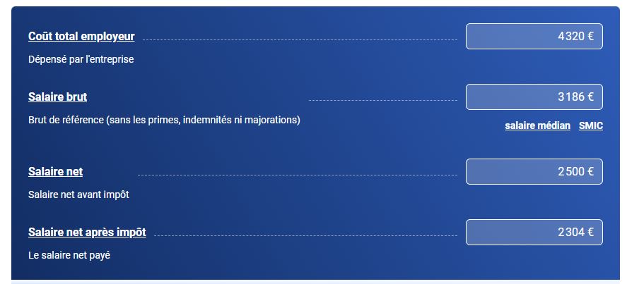 2 500 euros nets avant impôts c’est 2 300 euros dans votre poche après prélèvement à la source.