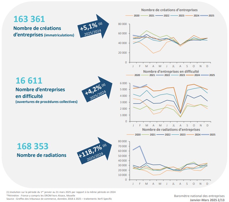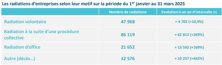C’est le Baromètre National des Entreprises qui nous donne le chiffre (source ici pour la version complète) de presque 48 000 entreprises qui n’ont pas fait faillite mais ont simplement cessé leur activité optant pour la radiation volontaire après avoir payé tout le monde donc sans laisser aucune dette à personne ni ardoise fiscale ou sociale ce qui comblera de joie notre Taxman.
