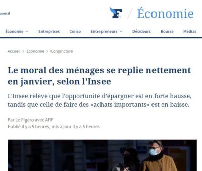 Comme je vous le disais plus haut, le moral s’effondre, et ce n’est que le début et le prélude à une immense dépression des ménages et donc de la consommation et donc de l’économie.