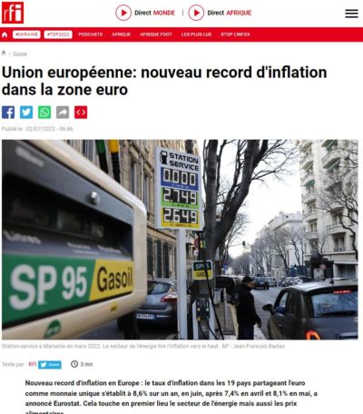 L’inflation touche les autres pays mais pas la France c’est bien connu comme disait Paul Reynaud en 1940 « nous vaincrons car nous sommes les plus forts » (les allemands n’étaient pas au courant et n’en ont pas tenu compte, dommage !) et aussi « la route du fer est coupée » (version ancienne et aussi inefficace que l’embargo contre la Russie !